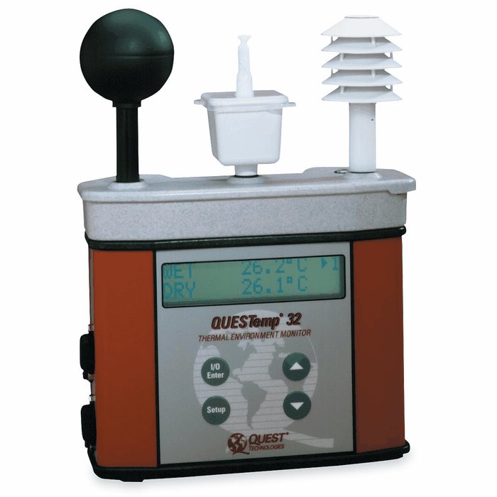 Para la medición de la temperatura radiante se empleó el QUESTemp 36 (Figura 4.7), un confortímetro diseñado para evaluar el estrés térmico en el ambiente, ya que permite medir la temperatura radiante, la temperatura del aire y la humedad relativa.