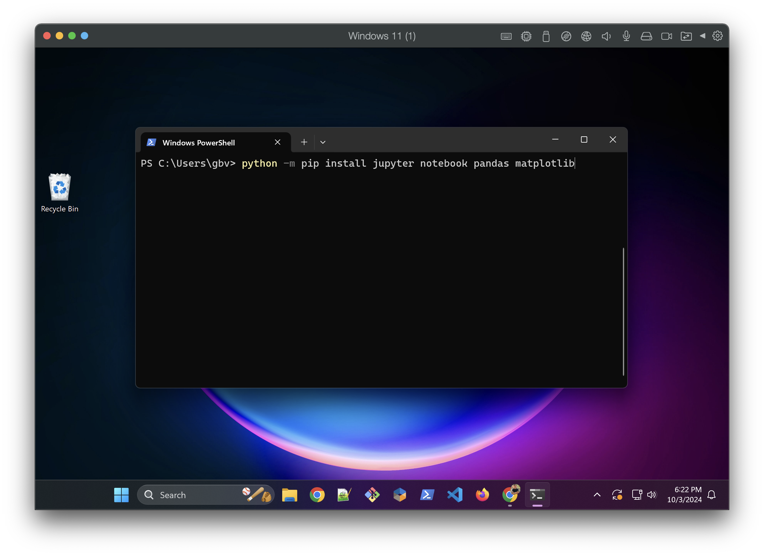 Instala jupyter notebook, pandas y matplotlib, recuerda hacerlo con python -m pip install jupyter notebook pandas matplotlib