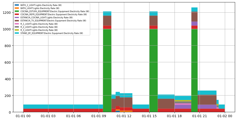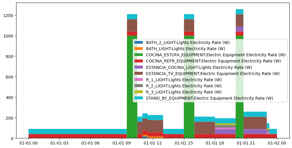 BATH_2_LIGHT:Lights Electricity Rate (W) BATH_LIGHT:Lights Electricity Rate (W) COCINA_ESTUFA_EQUIPMENT:Electric Equipment Electricity Rate (W) COCINA_REFR_EQUIPMENT:Electric Equipment Electricity Rate (W) ESTANCIA_COCINA_LIGHT:Lights Electricity Rate (W) ESTANCIA_TV_EQUIPMENT:Electric Equipment Electricity Rate (W) R_1_LIGHT:Lights Electricity Rate (W) R_2_LIGHT:Lights Electricity Rate (W) R_3_LIGHT:Lights Electricity Rate (W) STAND_BY_EQUIPMENT:Electric Equipment Electricity Rate (W) B1:Space People Occupant Count () B2:Space People Occupant Count () COCINA:Space People Occupant Count () R1:Space People Occupant Count () R2:Space People Occupant Count () R3:Space People Occupant Count ()