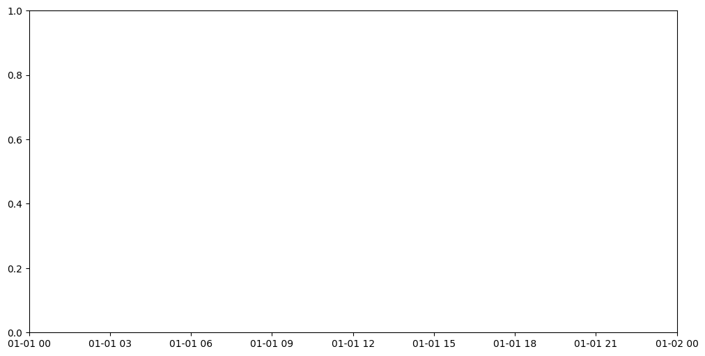 --------------------------------------------------------------------------- ValueError Traceback (most recent call last) Cell In[7], line 3 1 fig, ax = plt.subplots(figsize=(12,6)) ----> 3 ax.stackplot(horario.index,horario[electricos],labels=electricos) 5 ax.legend() File ~\venv\alldays\Lib\site-packages\matplotlib\__init__.py:1486, in _preprocess_data.<locals>.inner(ax, data, *args, **kwargs) 1483 @functools.wraps(func) 1484 def inner(ax, *args, data=None, **kwargs): 1485 if data is None: -> 1486 return func( 1487 ax, 1488 *map(sanitize_sequence, args), 1489 **{k: sanitize_sequence(v) for k, v in kwargs.items()}) 1491 bound = new_sig.bind(ax, *args, **kwargs) 1492 auto_label = (bound.arguments.get(label_namer) 1493 or bound.kwargs.get(label_namer)) File ~\venv\alldays\Lib\site-packages\matplotlib\stackplot.py:129, in stackplot(axes, x, labels, colors, hatch, baseline, *args, **kwargs) 126 stack += first_line 128 # Color between x = 0 and the first array. --> 129 coll = axes.fill_between(x, first_line, stack[0, :], 130 facecolor=next(colors), 131 hatch=next(hatch), 132 label=next(labels, None), 133 **kwargs) 134 coll.sticky_edges.y[:] = [0] 135 r = [coll] File ~\venv\alldays\Lib\site-packages\matplotlib\__init__.py:1486, in _preprocess_data.<locals>.inner(ax, data, *args, **kwargs) 1483 @functools.wraps(func) 1484 def inner(ax, *args, data=None, **kwargs): 1485 if data is None: -> 1486 return func( 1487 ax, 1488 *map(sanitize_sequence, args), 1489 **{k: sanitize_sequence(v) for k, v in kwargs.items()}) 1491 bound = new_sig.bind(ax, *args, **kwargs) 1492 auto_label = (bound.arguments.get(label_namer) 1493 or bound.kwargs.get(label_namer)) File ~\venv\alldays\Lib\site-packages\matplotlib\axes\_axes.py:5648, in Axes.fill_between(self, x, y1, y2, where, interpolate, step, **kwargs) 5646 def fill_between(self, x, y1, y2=0, where=None, interpolate=False, 5647 step=None, **kwargs): -> 5648 return self._fill_between_x_or_y( 5649 "x", x, y1, y2, 5650 where=where, interpolate=interpolate, step=step, **kwargs) File ~\venv\alldays\Lib\site-packages\matplotlib\axes\_axes.py:5564, in Axes._fill_between_x_or_y(self, ind_dir, ind, dep1, dep2, where, interpolate, step, **kwargs) 5561 if where.size != ind.size: 5562 raise ValueError(f"where size ({where.size}) does not match " 5563 f"{ind_dir} size ({ind.size})") -> 5564 where = where & ~functools.reduce( 5565 np.logical_or, map(np.ma.getmaskarray, [ind, dep1, dep2])) 5567 ind, dep1, dep2 = np.broadcast_arrays( 5568 np.atleast_1d(ind), dep1, dep2, subok=True) 5570 polys = [] ValueError: operands could not be broadcast together with shapes (1439,) (10,)
